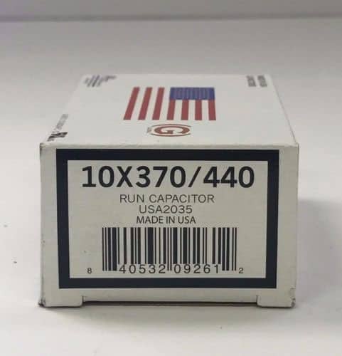 The AmRad Run Capacitor USA2035 10.0 of MFD 370 / 440 Volt. These capacitors are made in the USA and are UL810 approved. All capacitors are brand new and in the box.