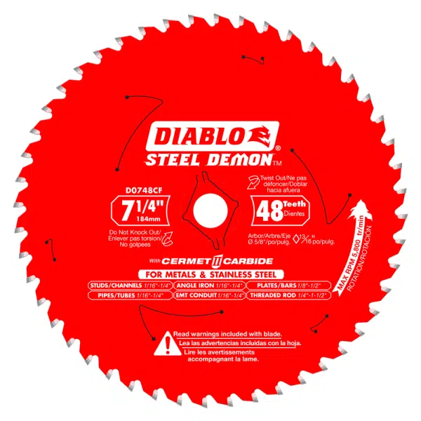 Diablo D0748CF 7‑1/4 in. x 48 Tooth Cermet Metal and Stainless Steel Cutting Saw Blade