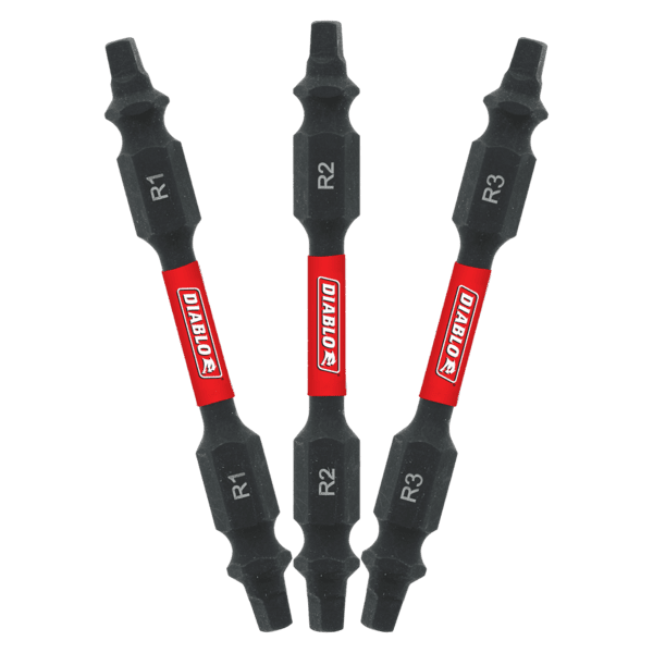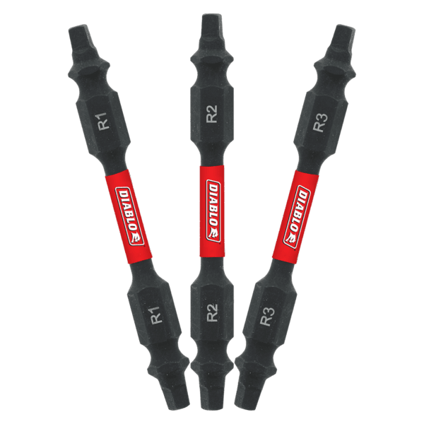 Diablo’s driver bit range of Square bits delivers maximum performance, extreme durability and up to 50x longer life when installing and removing fasteners. An optimized tip design provides a strong, precise grip that reduces wear, stripping and slippage. Torque Resistant Design absorbs torque for less stress at the tip when tightening and removing nuts and screws. This range is Impact Strong™, delivering increased shank stability and durability in cordless and corded impact and drill drivers.
