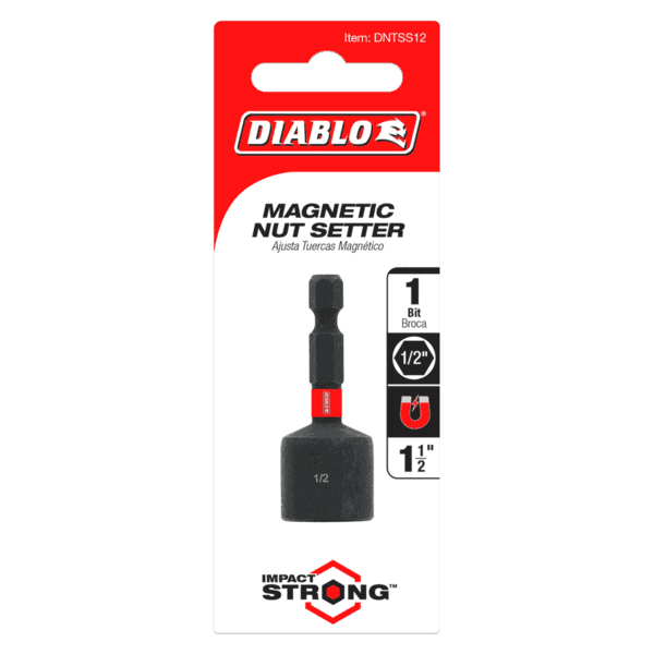 Diablo’s range of magnetic nut setters delivers maximum performance and extreme durability in driving hex nuts or self-tapping screws. A high-strength, permanent magnet provides a secure, anti-wobble grip when fastening screws and nuts into a variety of applications. Torque Resistant Design absorbs torque for less stress at the tip. This range is Impact Strong™, delivering increased shank stability and durability in cordless and corded impact and drill drivers.