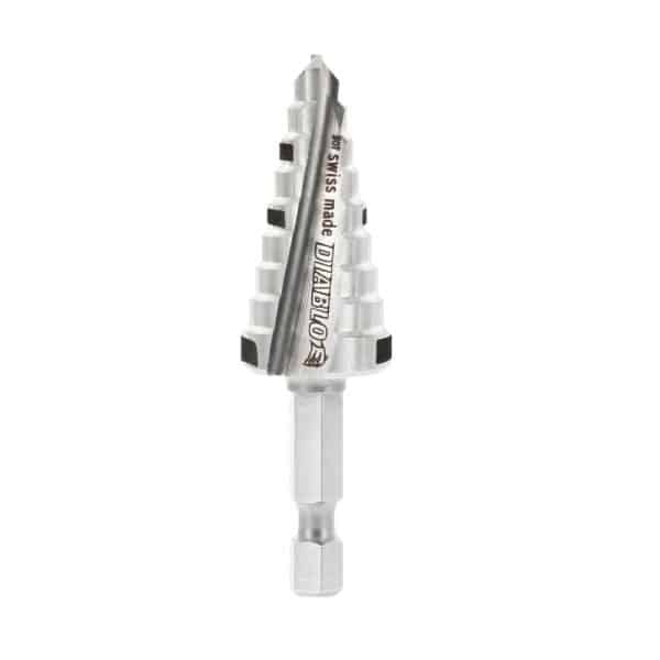 Diablo’s DSD0750S09 Impact Step Drill Bits bring exclusive technology to the Electrician, Plumber and HVAC contractor with fast, accurate cuts and increased stability in thin metals, PVC other plastic materials. The innovative Split Point Tip design enables a fast, on-point start resulting in increased durability and up to 4X longer life. An automated precision grinding process on each step reduces wear and delivers 2X faster cuts. Multiple hole sizes are made easy with laser etched step markings while increased step heights for common hole sizes makes drilling holes more efficient and faster. Designed with a ¼” hex shank, these bits are impact ready and can be used with drills and impact drivers.
