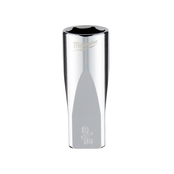 The Milwaukee 1/4 in. drive 9/16 in. SAE 6-point deep socket was designed from the ground to be part of the most versatile socket family. The innovative socket design has four parallel flat sides, which deter rolling and are wrench-compatible. Socket sizes are stamped into the flats for improved easy-to-read visibility. Optimized socket geometry helps reduce bolt rounding and stripping.