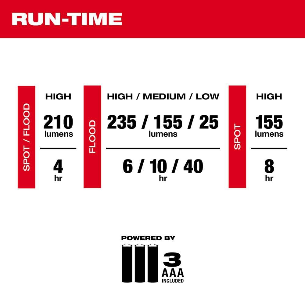- Up to 40 hours of run-time on low mode
