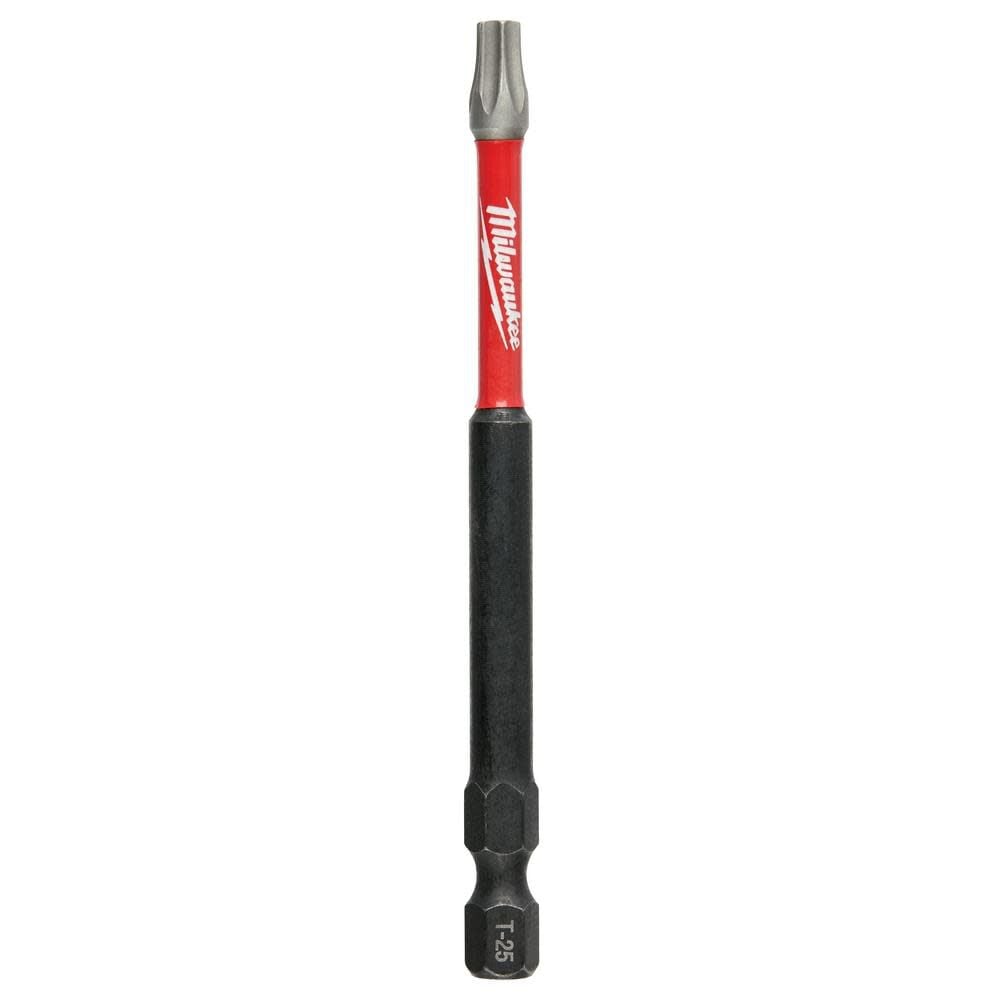 The MILWAUKEE® SHOCKWAVE™ 3-1/2″ Torx 25 Impact Duty™ Bit 2 Pack is engineered to be the most durable, best fitting driver bits on the market. The torx bits feature Wear Guard Tip™ for increased wear resistance, which protects the fit over the life of the bit. The impact driver bits have an optimized Shockzone™ for each tip type and length of driver bit to absorb peak torque and prevent breaking. The Custom Alloy76™ Steel is customized and heat treated per tip type to extend the life of the driver but by up to 50X vs. competitive impact driver bits. The MILWAUKEE® SHOCKWAVE™ Impact Duty™ driver bits are built to deliver extreme durability for the most demanding applications.