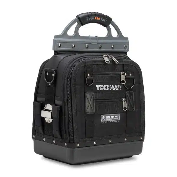 The TECH-LCT BLACKOUT is a “blacked-out” closed top tool bag designed to accommodate technicians’ tools and work routines. This weatherproof, large-sized service technician’s tool bag organizes, stores and protects hand tools and meters, making service calls or system installs quicker and more efficient. The TECH-LCT BLACKOUT tool bag sports up to 55 interior and exterior pockets with ample room for hand tools, parts boxes, meter, a cordless impact drill and other bulkier items. The TECH-LCT BLACKOUT features our V-SWAP™ system, allowing for customization of the interior pocket layout by simply swapping panels for different storage layouts. Standing at 15″ tall, this bag is great for tradespeople who want to store large tools and equipment in a closed-top tool bag.