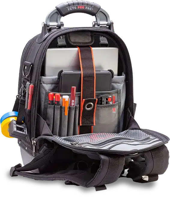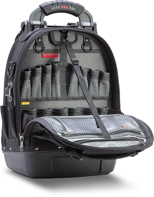 The Veto Pro Pac Tech Pac Blackout is a premium tool backpack engineered for technicians, electricians, and field service professionals who need organized, rugged, and portable gear storage. With its sleek all-black “Blackout” design, this backpack combines modern style with the legendary durability and functionality that professionals rely on every day.